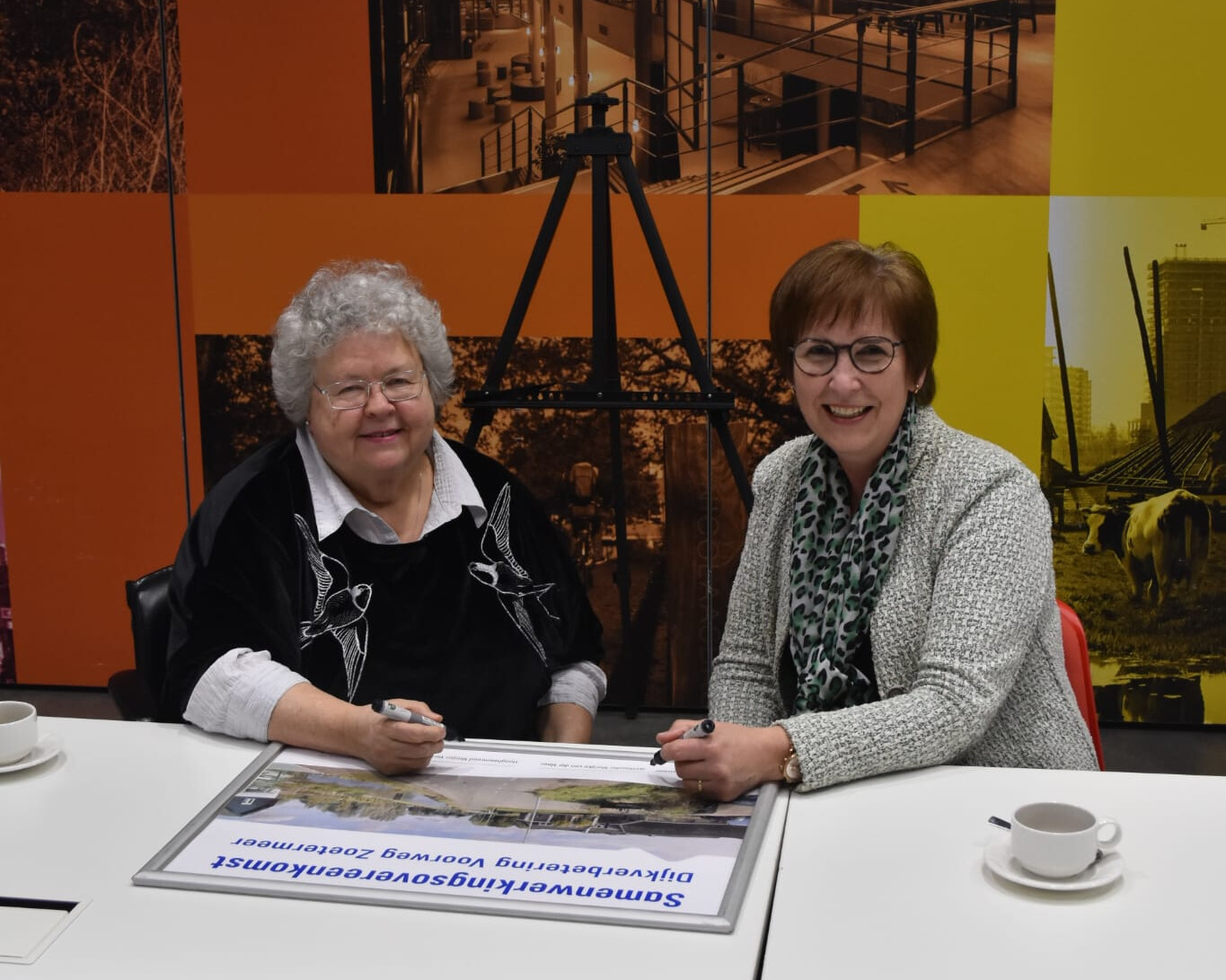 Hoogheemraad Marjon Verkleij-Lemmers en wethouder Marijke van der Meer spraken na de ondertekening allebei hun vertrouwen uit in een prettige samenwerking. Met de samenwerkingsovereenkomst is een nieuwe stap gezet in de realisering van project Voorweg.