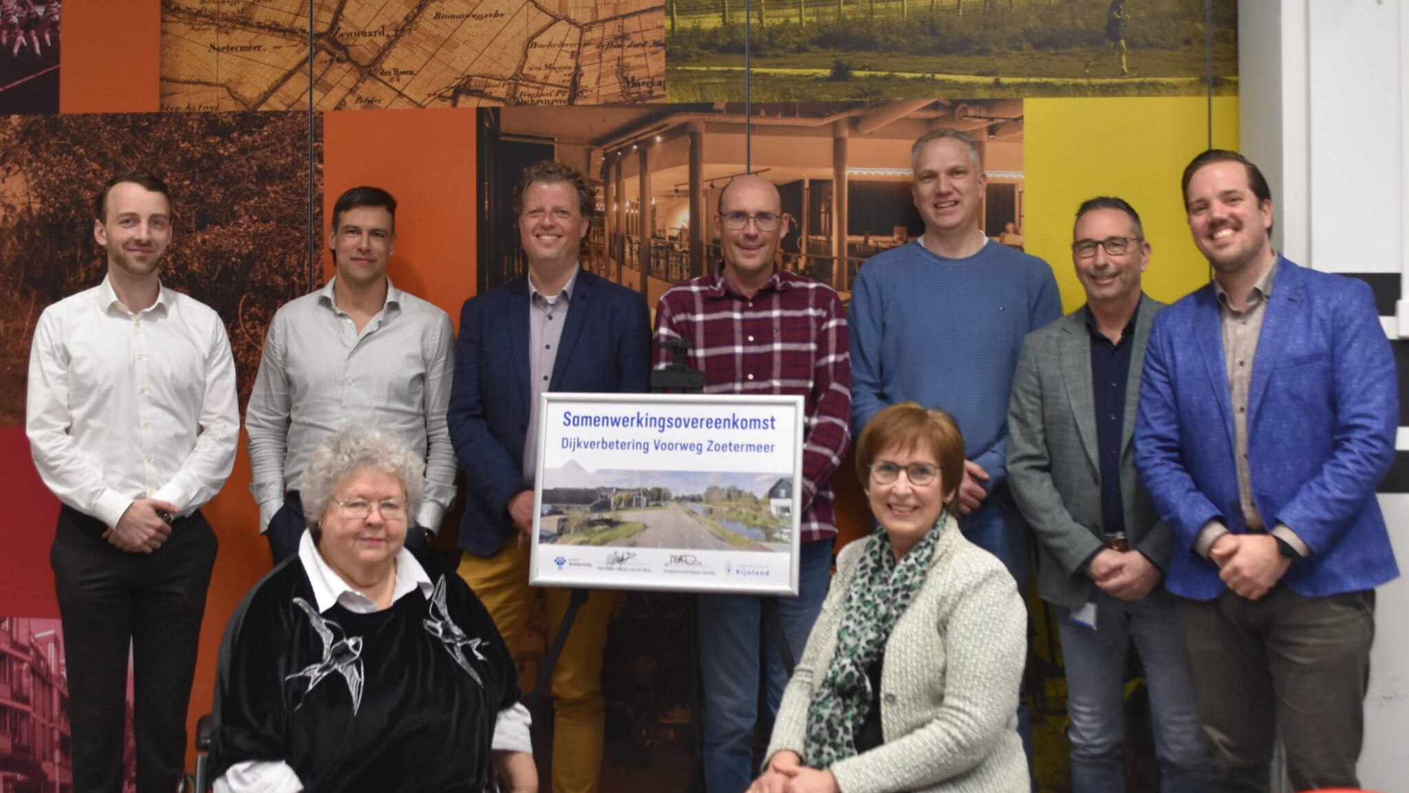 V.l.n.r. achteraan: Matthias Verdoes (Rijnland), Benno Born (Gemeente Zoetermeer), Niels Minnen (Rijnland), Cees de Booy (Rijnland), Stefan de Rijck (Gemeente Zoetermeer), Marc Cohen (Rijnland), Maarten Linssen (Gemeente Zoetermeer). Vooraan: Marijke van der Meer (Wethouder Gemeente Zoetermeer), Marjon Verkleij (Hoogheemraad Rijnland)