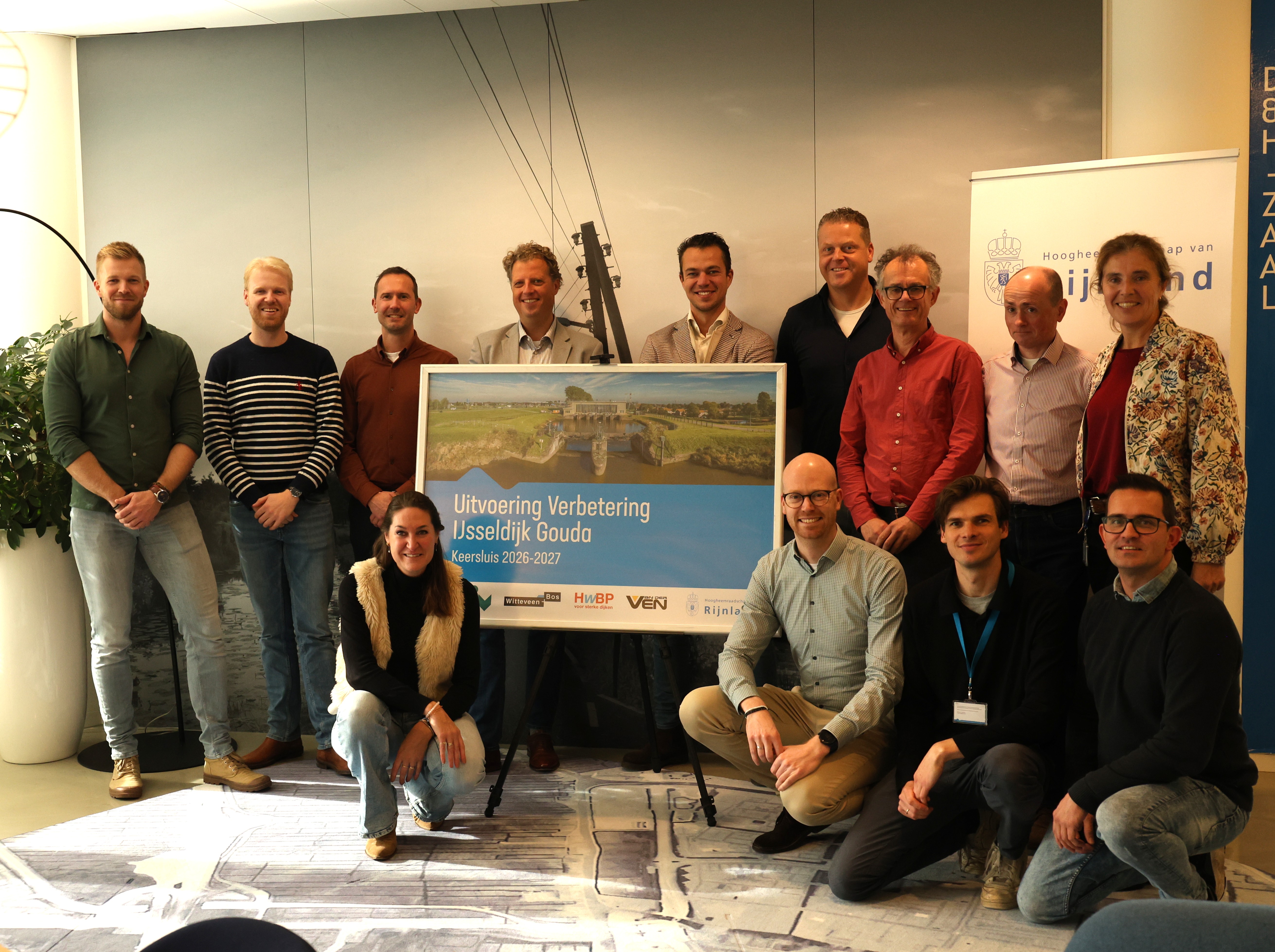 V.l.n.r. bovenste rij: Stefan Blok (Van der Ven), Dirk-Jan Pennings (Van der Ven), Ruud Nooij (Iv-Infra), Niels Minnen (Rijnland), Martin den Otter (Van der Ven), Bart van der Pouw Kraan (Rijnland), Eric Brasser (Rijnland), Dennis Everling (Witteveen+Bos), Anita Willig (Rijnland). V.l.n.r. onderste rij: Leonie Langerak (Rijnland), Derk van Noord (Rijnland), Pieter Verheij (Rijnland) en Remco Kelder (Den Boer CCI).