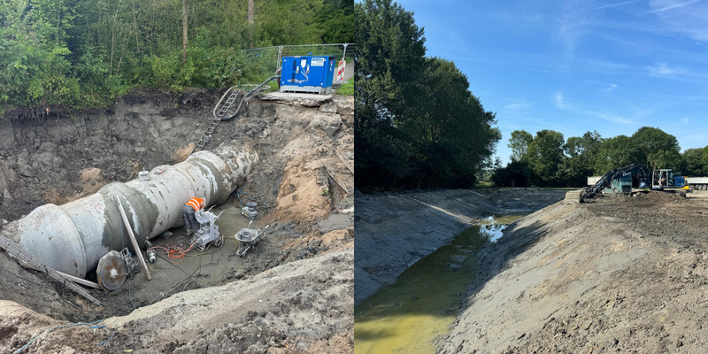 En aannemer KWS begon aan een heleboel graafwerk voor de sloten.