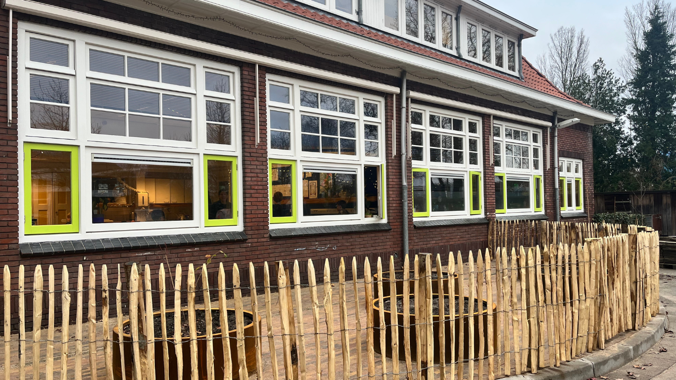 Een prachtige vernieuwing van het schoolplein waar op een leuke en leerzame manier groen-blauwe ideeën zijn geïmplementeerd. Zo is er een insectenhotel geplaatst, veel beplanting en 9 moestuinbakken voor de kinderen om hierover te kunnen leren. Ook op het gebied van water is er veel veranderd. Naast het aanpassen van de riolering zijn er ook regentonnen en coating tegen wateroverlast geplaatst. Tot slot nog een aantal nieuwe speeltoestellen en een prachtige kapschuur als buitenlokaal. Een erg geslaagd project dus!