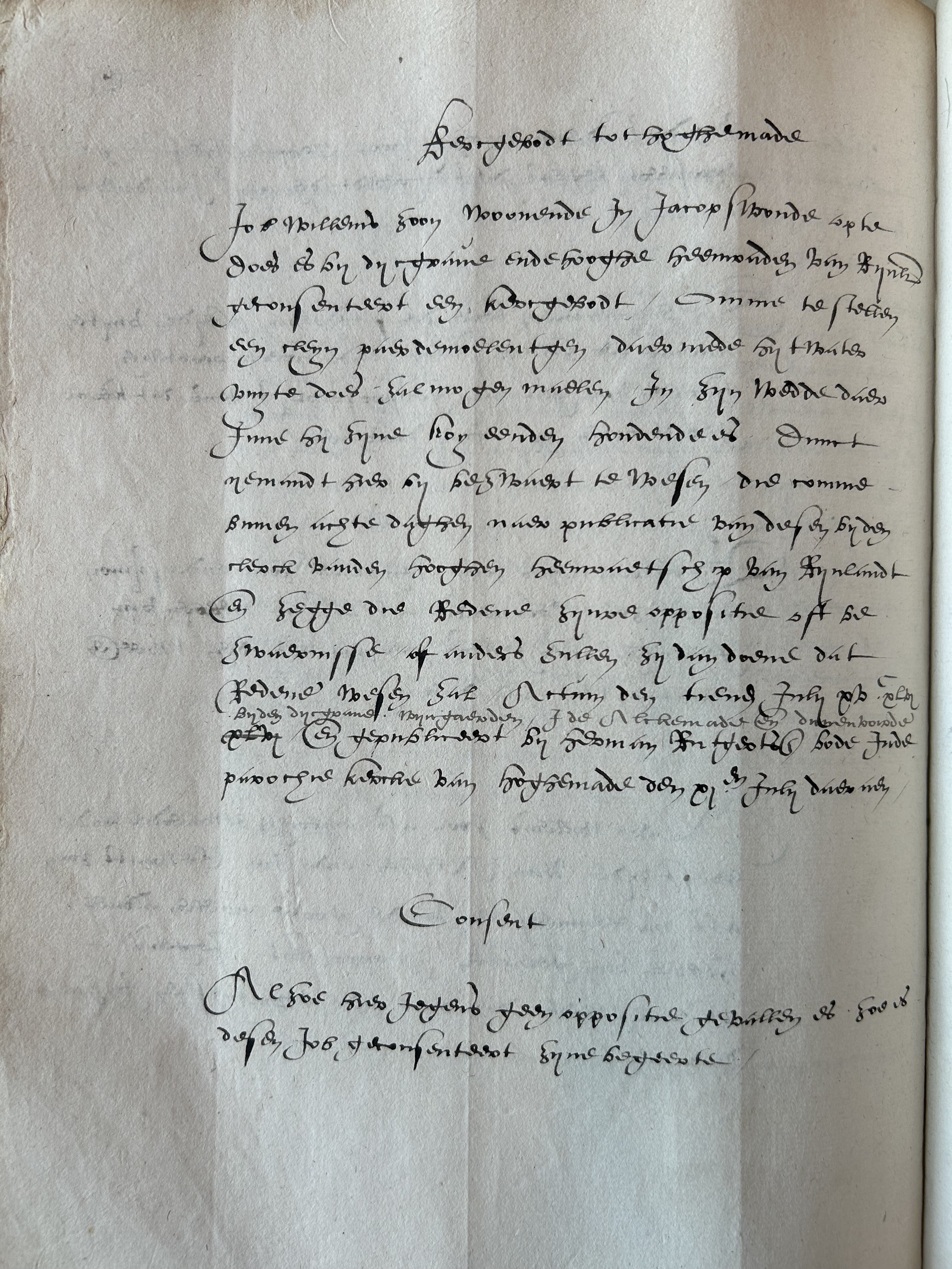 Transcriptie (eerste 6 regels): Kercgebodt tot hoghemade Job Willems zoon woonende In Jacobswoude op te Does es bij dijcgrave ende hooghe heemraden van Rijnl[and]t geconsenteert een kercgebodt, Omme te stellen een cleijn paerdemoelentgen daer mede hij t water uuijte does zal mogen maelen In zijn wedde daer Inne hij zijne koy eenden houdende...