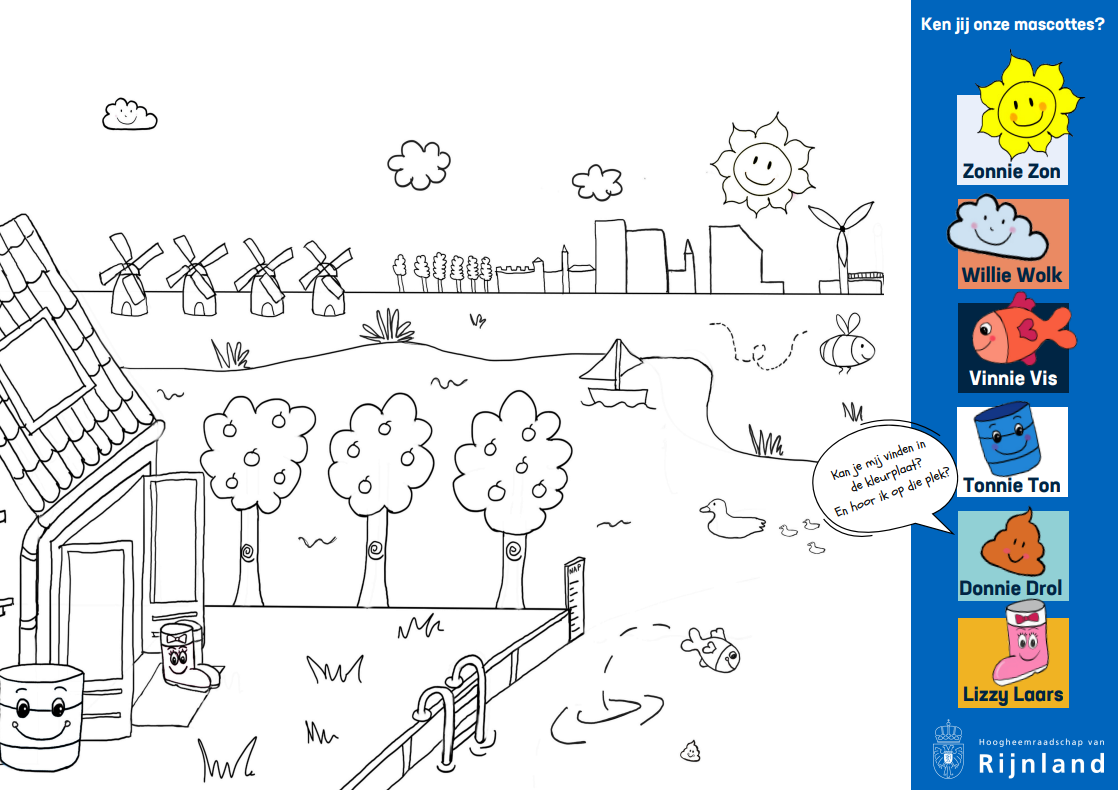 Wat leuk dat je meer van ons wilt weten! Wij zijn de 6 mascottes van Rijnland en we stellen ons graag aan je voor! Oh, en we hebben ook nog iets leuks voor je. Namelijk een kleurplaat waar wij alle 6 op staan. Hoe leuk is dat! De kleurplaat vind je onderin.