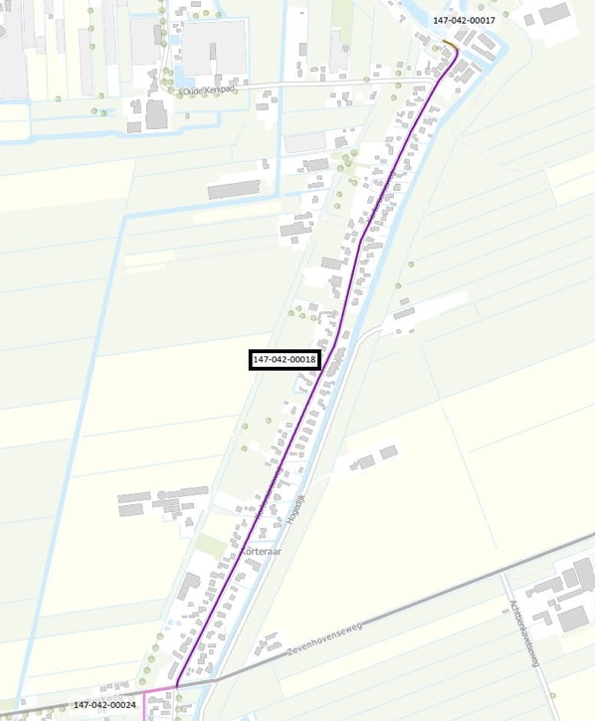 Het zuidelijk deel van de Korteraarseweg vanaf huisnummer 88, wordt in dit project niet opgehoogd. Dit is mogelijk een toekomstig project. De dijk loopt hier ten westen van de Ringvaart langs de achtertuinen van de huizen aan de even kant. Ook dit kun je zien op onze leggerkaart. Wanneer er veel regen valt, zal het water over de Korteraarseweg ten zuiden van de Kerkweg lopen. Hierna zal het ook over de de dijk lopen en het zuidelijk deel van de polder instromen.