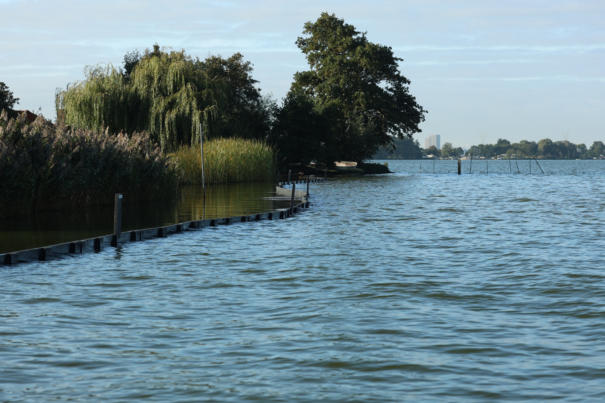Rijnland wil de waterkwaliteit van de Kagerplassen verbeteren. Dat doen we door luwteschermen en palenrijen aan te leggen langs oevers. De luwteschermen en de palenrijen zorgen voor een windvrije, beschutte plek die een goede leefomgeving biedt aan planten en dieren. Deze maatregel verbetert daarmee de waterkwaliteit en de biodiversiteit.