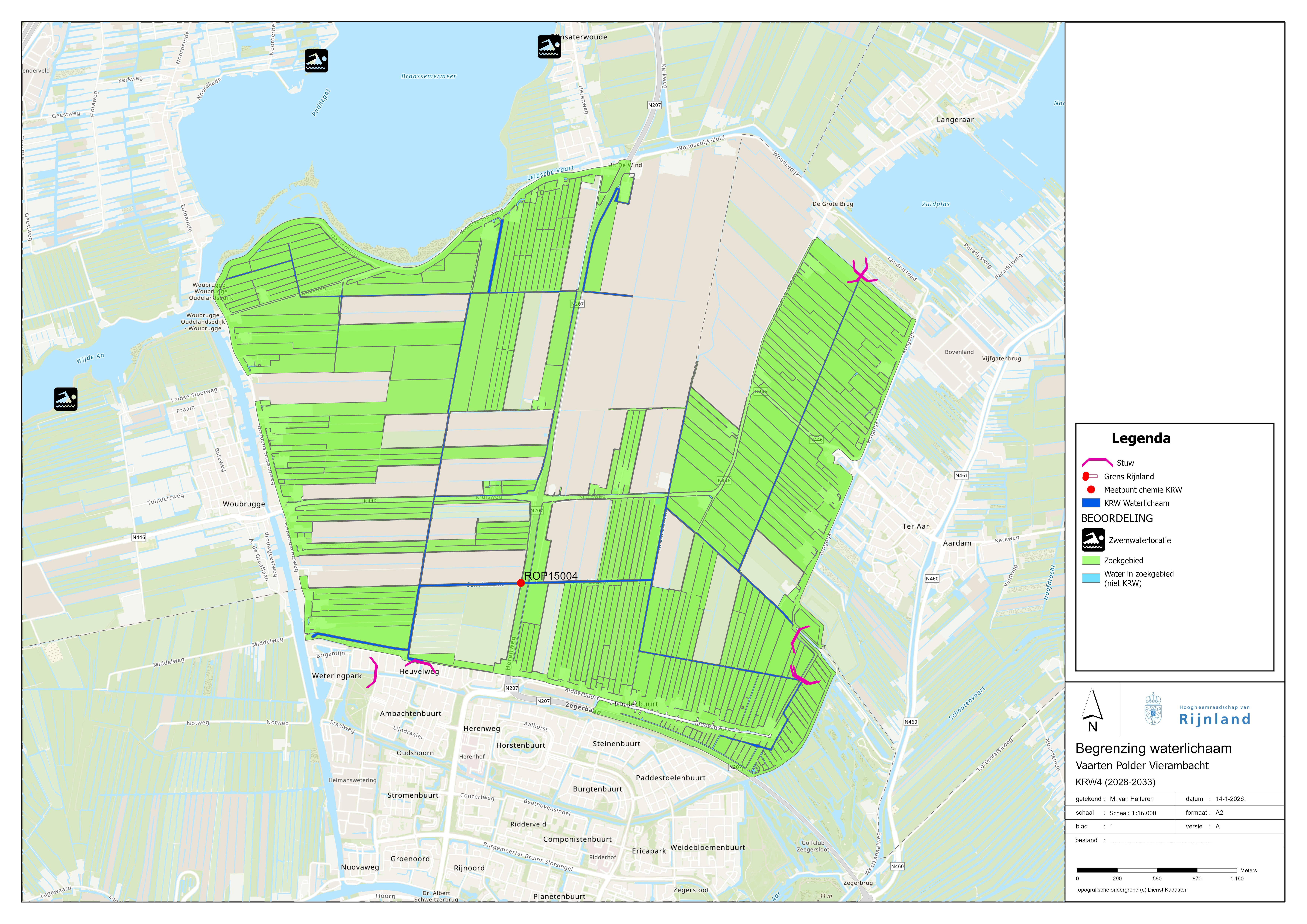Rijnland is verantwoordelijk voor de waterkwaliteit in veertig KRW-waterlichamen. Waterlichamen is de benaming voor plassen en kleine binnenwateren zoals meertjes en vennen. Vaarten Polder Nieuwkoop en Vaarten Polder Vierambacht zijn twee van de veertig waterlichamen.
