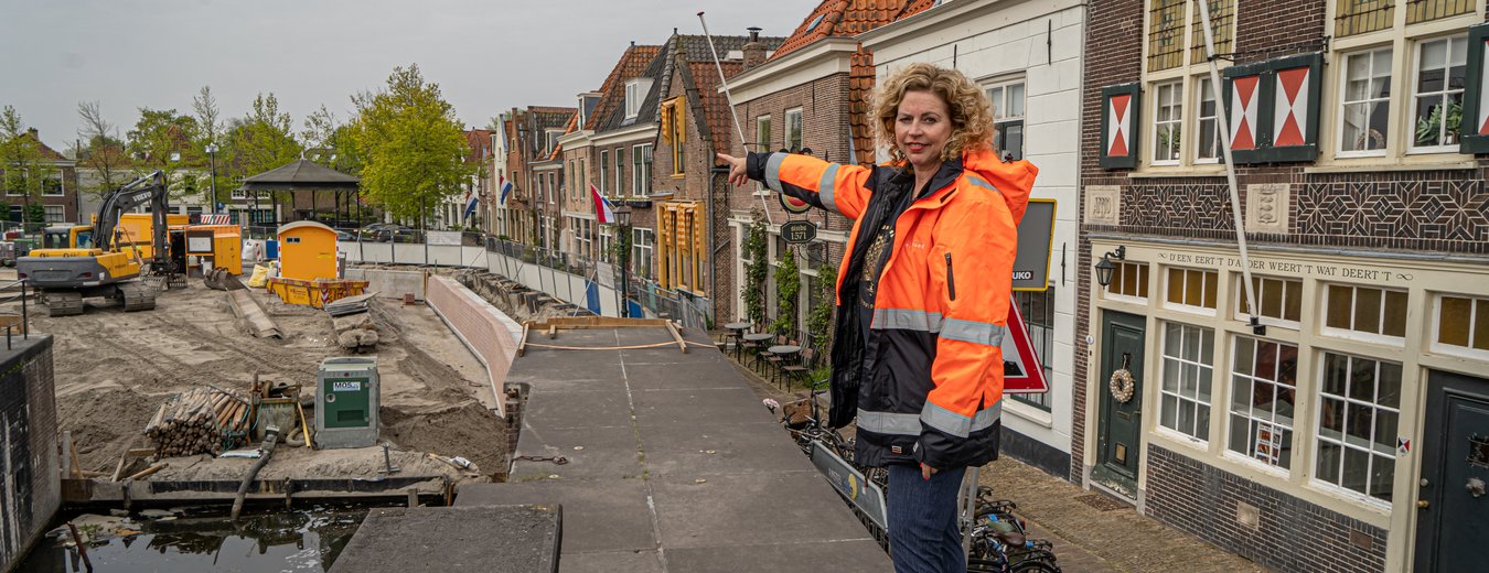 Alexandra Braun is één van onze waterbazen. Zij werkt bij Rijnland als omgevingsmanager. Vandaag staat ze voor de lens in Spaarndam. Hier werkt ze aan het vervangen van de kademuren van de Kolksluis.
